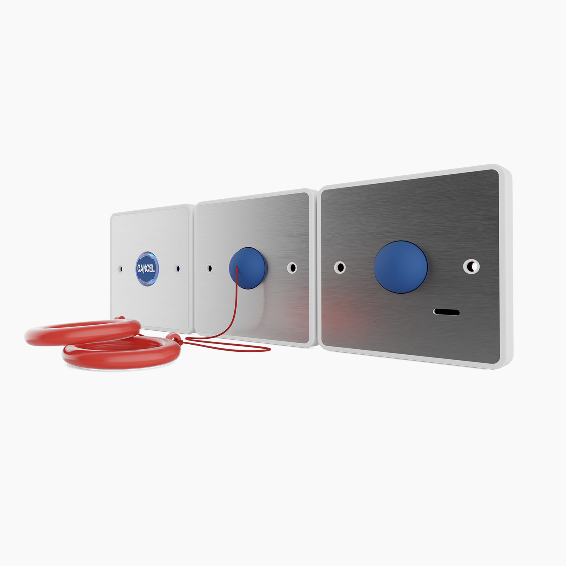 When a call is made the over-door and cancel units emit a two tone siren and the LED flashes. When the call is acknowledged, the LED on these units lights steadily and the tone double beeps every 15 seconds to reassure the caller that help is on the way.