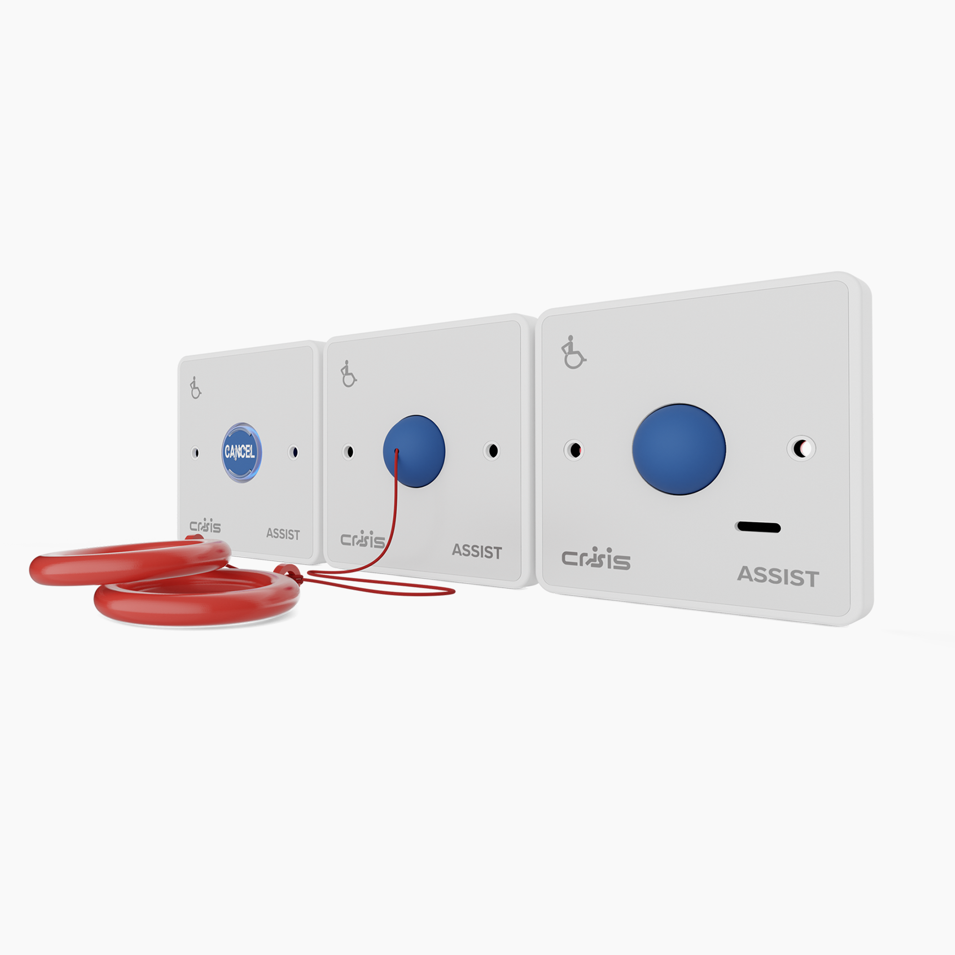 The Crisis Assist WC Kit can be used on a dedicated line, or may share a line with the Crisis Type B Refuge Outstation (as long as fire rated cable is used), where operation of the refuge point overrides the assistance call (ideal where a disabled toilet is adjacent to a refuge lobby).